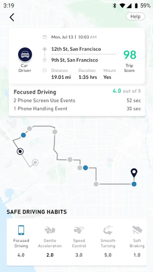 Copilot is your partner in visualizing and improving your driving safety. Copilot automatically detects trips and analyzes driving behavior, providing a turn-by-turn breakdown of each drive. Drivers can identify their strengths and opportunities for improvement by seeing their dangerous behaviors on an interactive map. Copilot detects crashes and other signs of unsafe driving like distracted phone use, speeding, hard braking, rapid acceleration and hard turning.