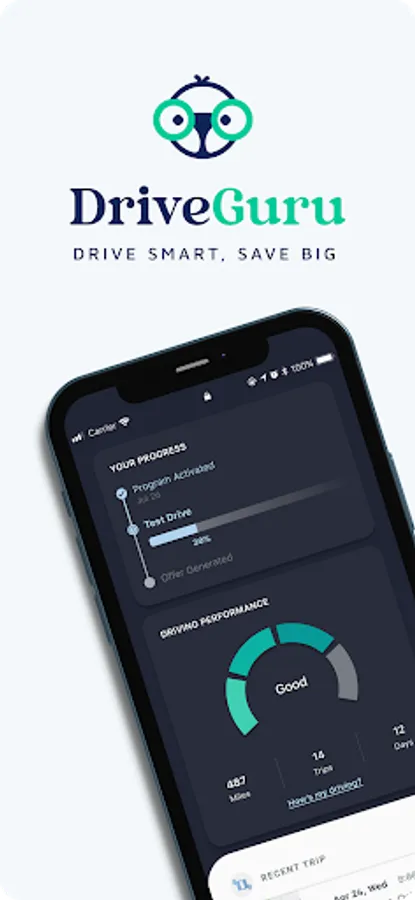 The DriveGuru app helps users save on auto insurance by demonstrating safe driving habits. The app allows users to sign up for a free test drive program within seconds. Users in qualifying states drive around for about 30 days and get ongoing feedback and insights on driving behavior, helping them increase the size and odds of their discounts. Upon qualification, users see unique offers from leading insurers directly in the app.