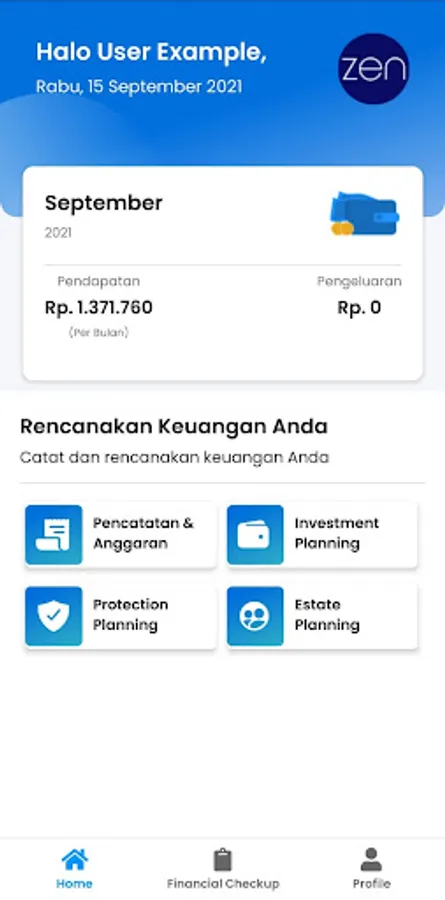 There are 6 services including: Current Financial Position, Protection Planning, Investment Planning, Tax Planning, Retirement Planning, and Estate Planning with complete features ZEN The application will continue to strive to help the community in family financial planning effectively and efficiently