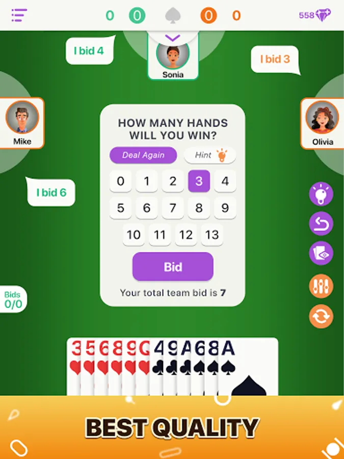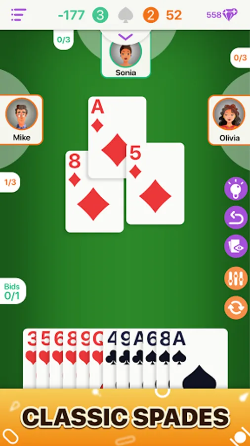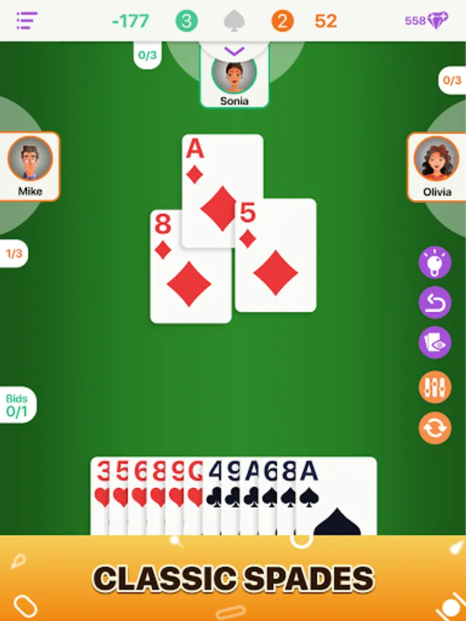 Spades offers a beautiful, intuitive and efficient interface with many features to give you the best gaming experience. Create your own and unique game with many customization options.