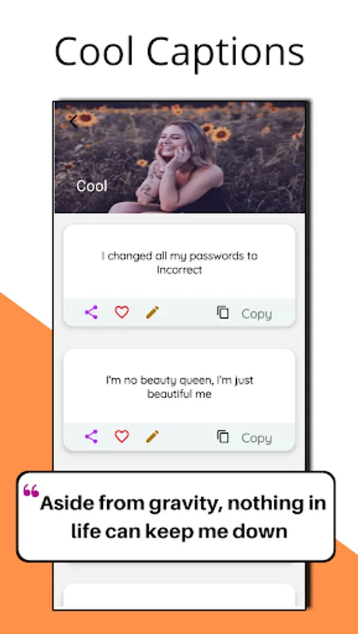 With our app, you can browse through hundreds of pre-made captions and quotes, sorted by category, such as Love, Friendship, Travel, and more. We have something for every occasion, from funny one-liners to sentimental sayings.