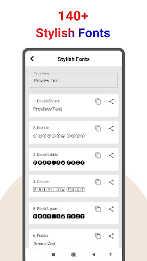 Fancy Text - Cool Font app helps you to generate fancy text, stylish text, Cool letters, different text styles, text-decoration, stylish messages, fancy characters, stylish font, ASCII art for creating a nickname, customizing your username and profile, customizing Facebook bio and photo caption.