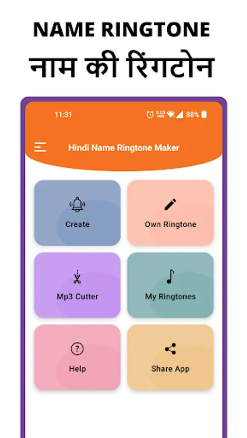 Create your own Hindi name ringtone, customize the ringtone as you wish. Make your own my name Hindi ringtone, share the ringtone you have created with your friends and family.