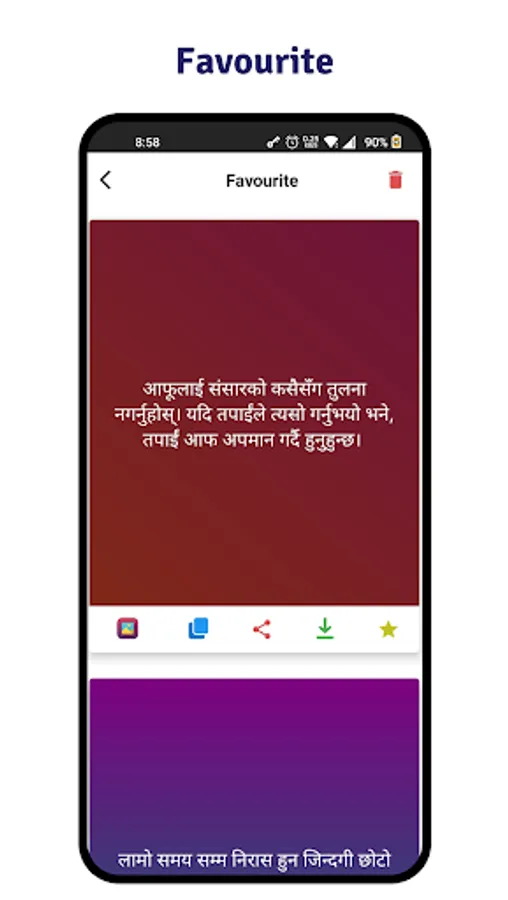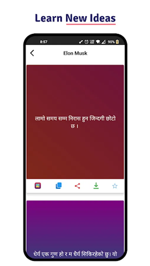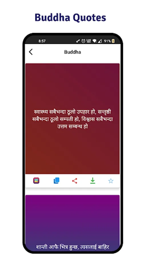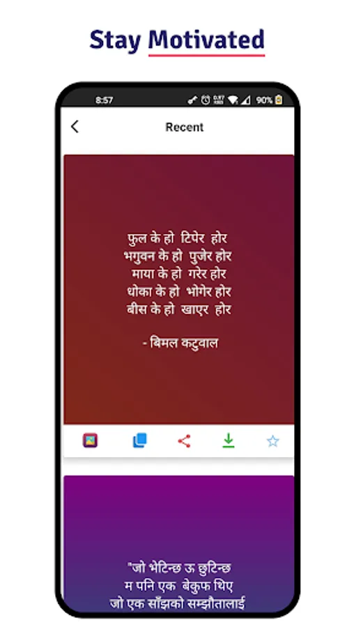 Nepali Motivational Quotes will help you, to change your way of thinking with beautiful beautiful quotes about life, happiness, quote of the day, and quotes of successful people. When you start to feel down or depressed, a simple solution for this is to read motivating quotes from famous authors like Buddha, Nicholas Sparks, Schweitzer, Albert Camus which should keep you motivated for a long time. Share motivational quotes in social media like WhatsApp, Facebook, Instagram, and many others in form or text, or images. New quotes are added every day, users can also post their quotes in the app.