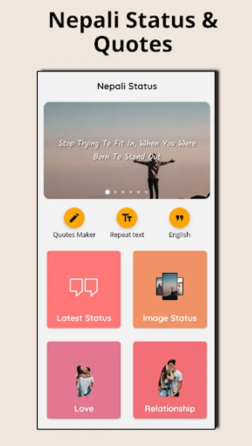3. With Nepali status, you'll have quick access to a collection of 1000 + of the best Nepali status with the tap of a button. You'll be ready for action at any time.