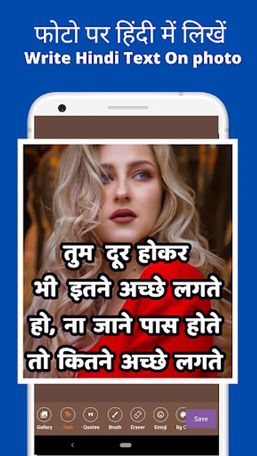 3. Write your Hindi Status, poetry, Shayari, text on photoes.
