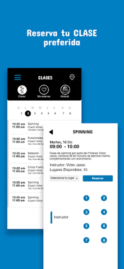 Indoor cycling classes lasting 45 minutes, a discipline aimed at exercising different muscle groups through resistance and speed to the beat of the music.