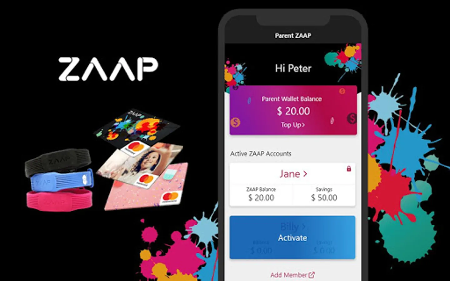 ZAAP is a leading edge digital tool for parents and children. Better than a debit card, it is a Mastercard Pocket Money Card and/or Wearable Payment Band supported by our innovative App.