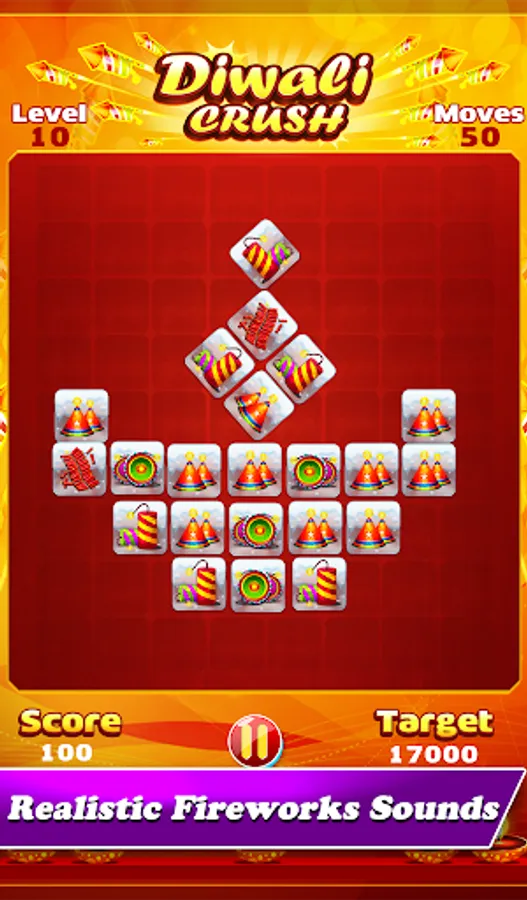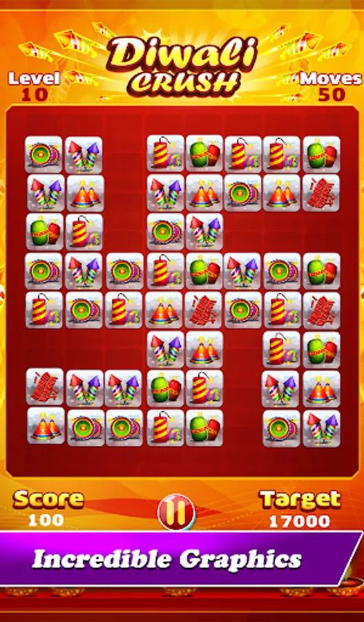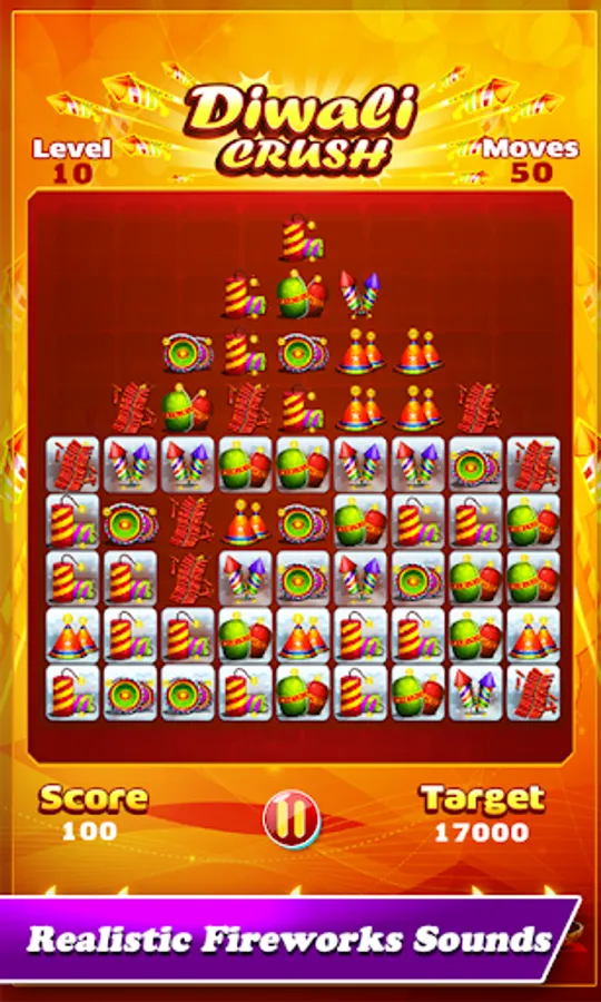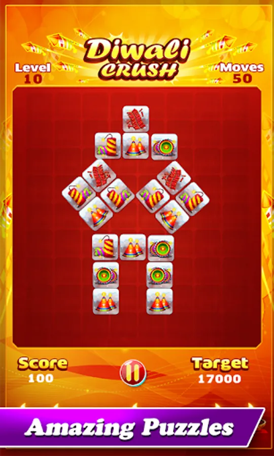 Diwali Crush is a game based on the Diwali Festival, one of most famous hindu festival celebrated all over the world and mostly in india. Deepawali also known as festival of Diyas(Lights).