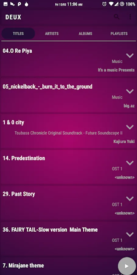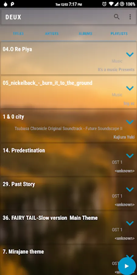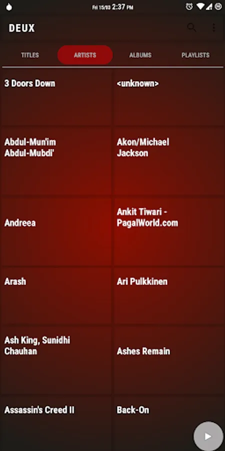 Continue where you left off with the play button as Dual Music Player remembers the last queue and where you stopped.