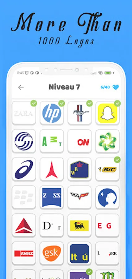The game ZinQuiz contains 26 levels and 1040 logos, each level contains 40 logos, you can open levels very easy and automaticly with stars. Guess the name of the brand that appear on the screen and answer it. Very easy but difficult to guess!! You can guess the name of the brand by using the help!!.