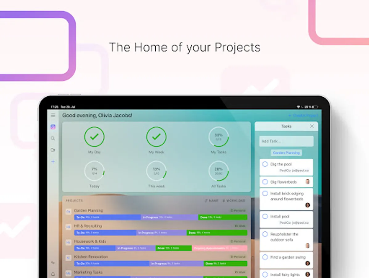 - Track progress across all projects with a global Kanban view
