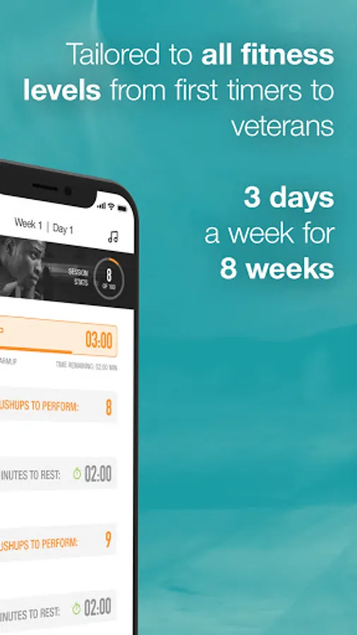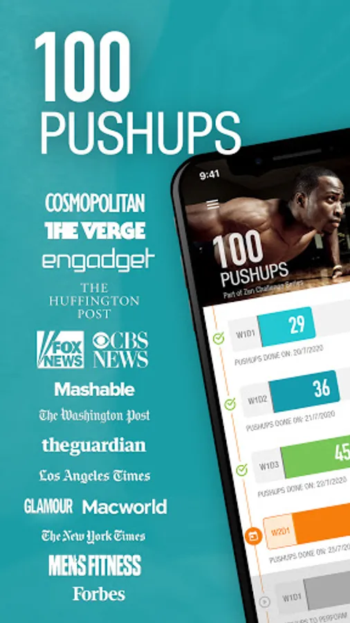 "Could barely do 20 pushups, but this program challenged me and got me to my goal! Easy straightforward program. Just press start and the voice coach guided me through!"