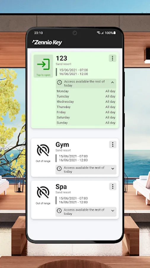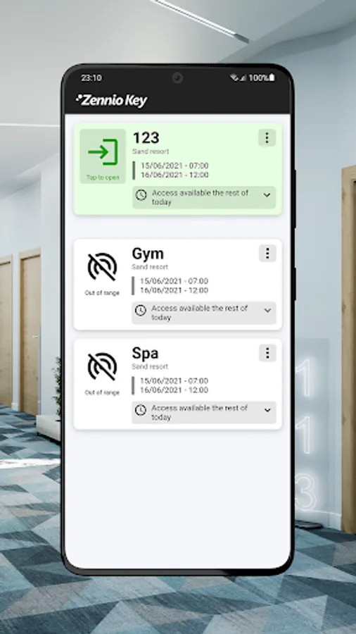 Zennio Key app allows you to download in your smartphone the Bluetooth key to access your room during your stay in a hotel with the Zennio Access Control system installed: Z-Access. Zennio Key enables contactless access, completing the check-in process already available in many hotels where the guest is not required to personally go to reception to pick up the room key.