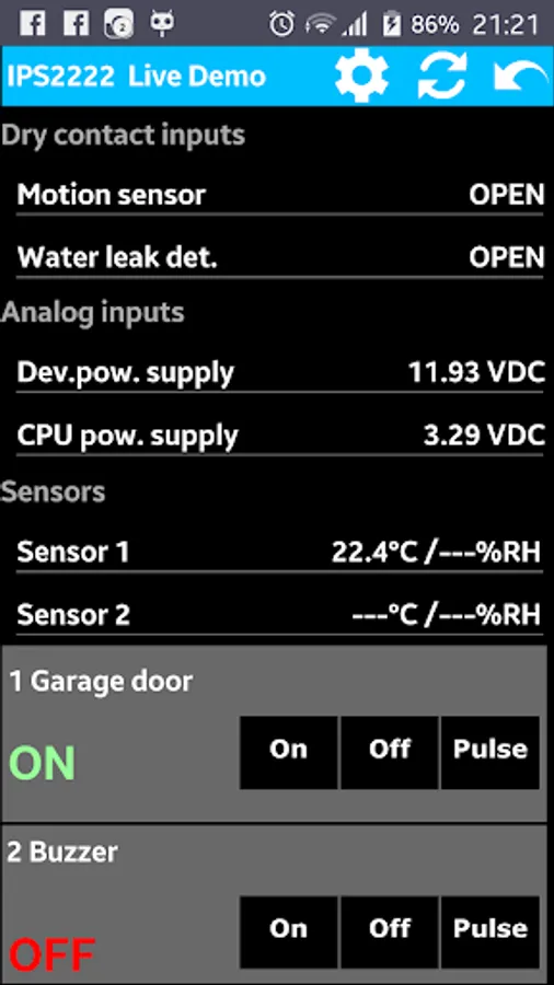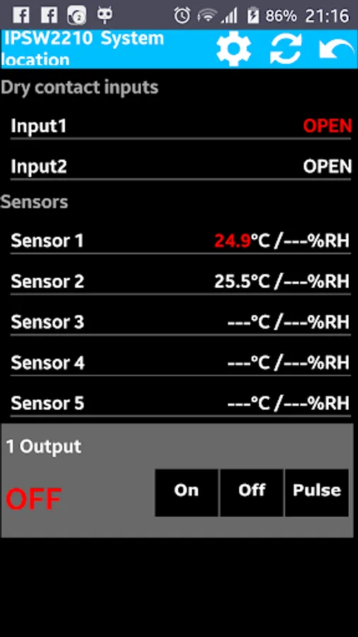 IPSensor application is collecting all data like sensor values, sensor names, device name, location, IP address, HTTP port and allows direct control of relays.