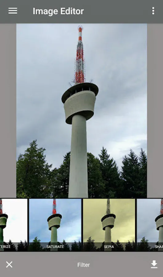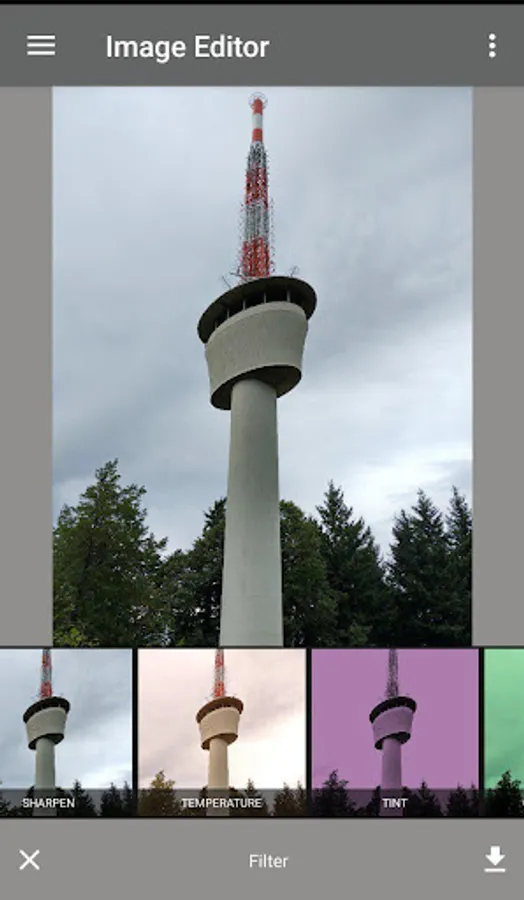 Application for image processing. Among the functions there is the ability to apply effects, photo filters, draw, write text, adjust color,сrop,rotate