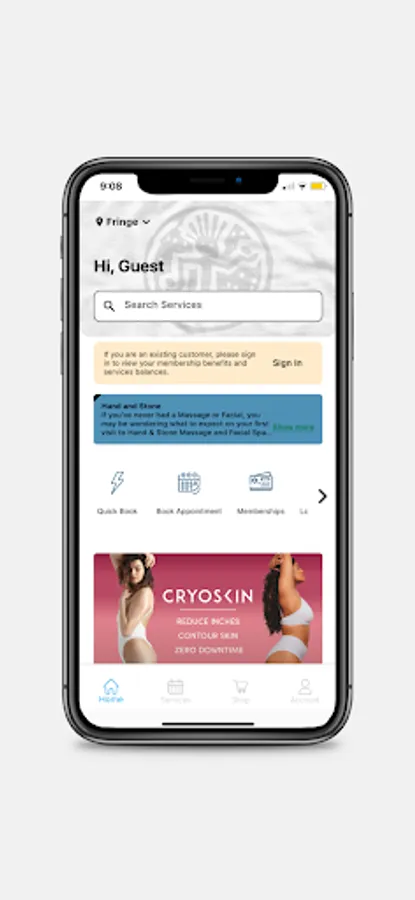 With the Hand & Stone Mobile App, relaxation and comfort are at your fingertips. You can book an appointment at any of our 500+ locations, and customize your spa experience with our selection of available services and upgrades. You can also purchase a gift card for friends and relatives, or view your available membership credits and loyalty points. The app also features a Quick Booking option for faster booking of repeat services, and a self check-in feature for members.