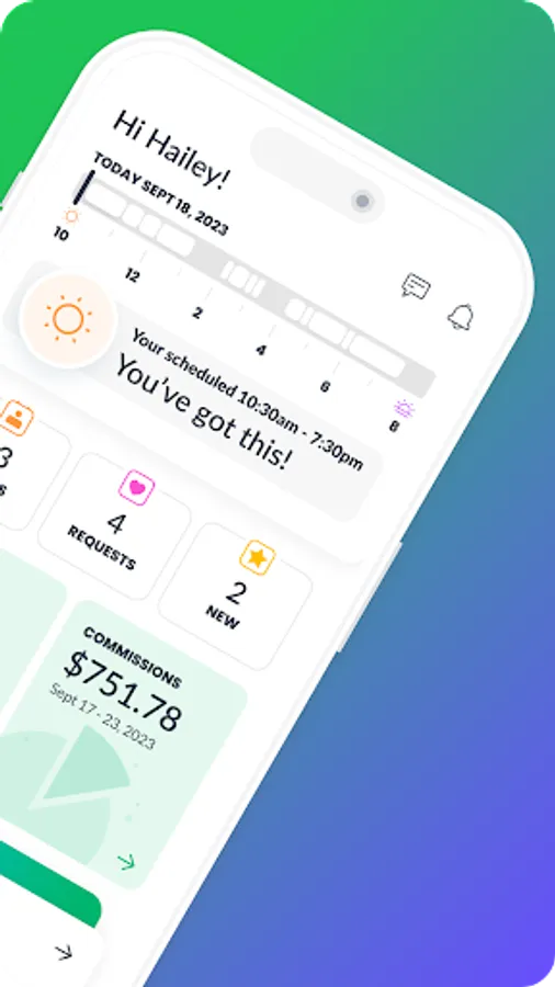 Effortlessly view the day's summary and metrics, including scheduled guests, new guests, and financials such as tips and commissions on one screen.