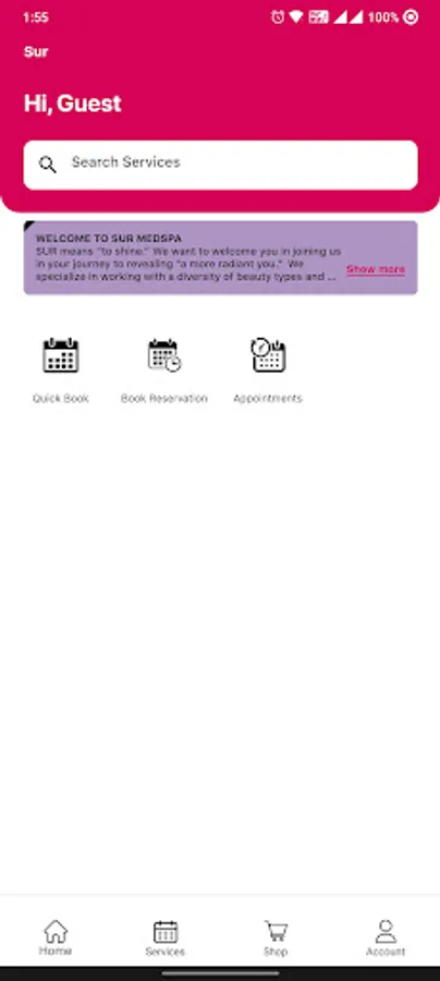 The SUR MedSpa app gives you quick and easy access to book appointments from our comprehensive treatment menu and allows you to manage your account right from your phone.