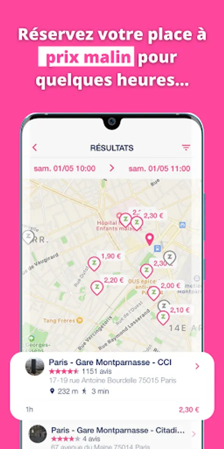 1. Find a cheap parking space: around you or near the place of your choice, find a parking space by indicating the duration of your parking and the size of your vehicle.