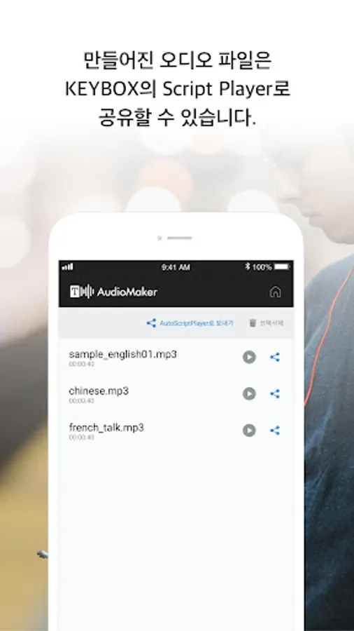 Changed voice files can be shared directly with our company's language app, keybox Player.