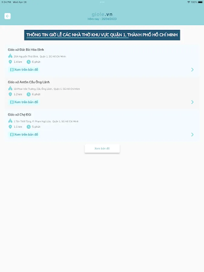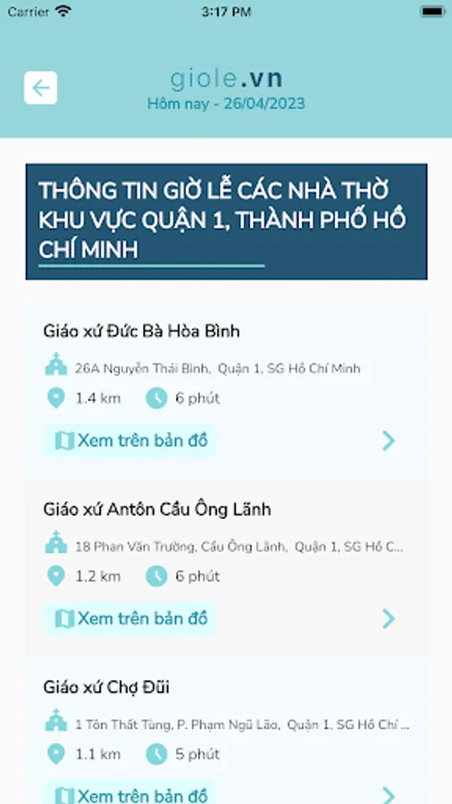 Application Searching for Sunday and weekday Masses of churches and parishes in Vietnam.
