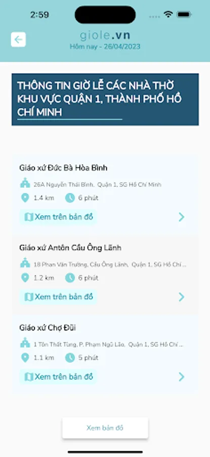 Mass time data of more than 2000 churches in Vietnam, the main information includes: Sunday Mass time, address, map location.