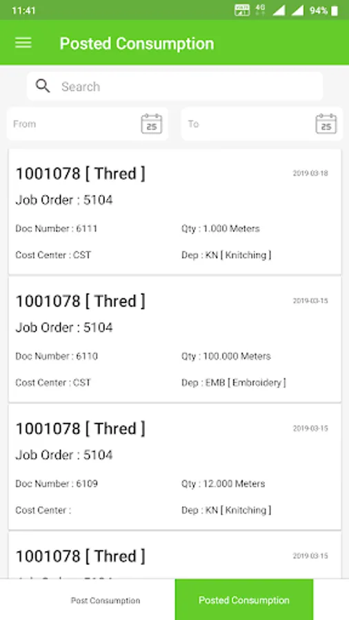 ZenConsumption app helps you in assigning the material for consumption against any job order, department and the cost center associated. It makes the process of creating finished goods easy as you can view all the consumed materials of different locations at one place i.e. on your mobile.
