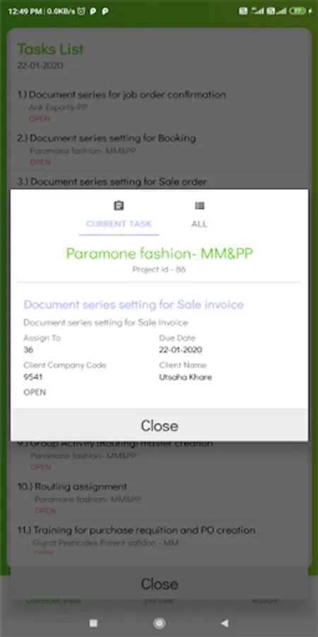 ● Check the status of ‘OPEN’, ‘CLOSE’, ‘MY OWN TASKS' at a single place differentiated by color.