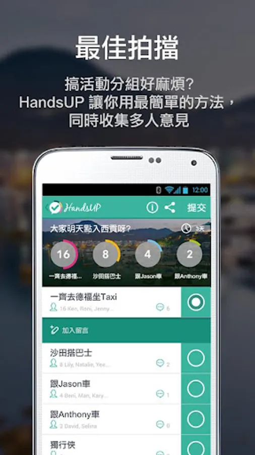 C) with Anthony vehicles, limit 4, 8:45 Tai departure