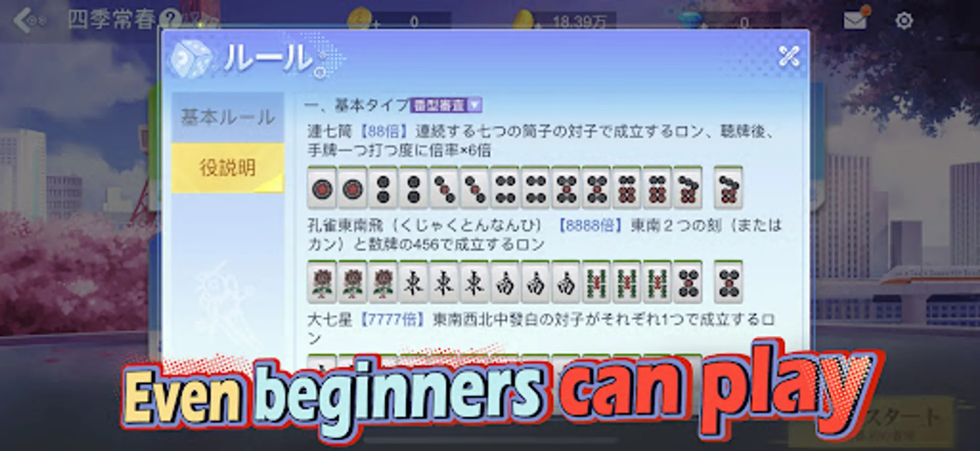 The simple operation and abundant assist functions allow even novice mahjong players to enjoy the fun of playing mahjong.