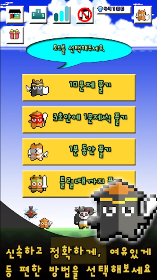 In this mode, you can choose one or more of the four arithmetic operations that you are not toxic to practice intensively.