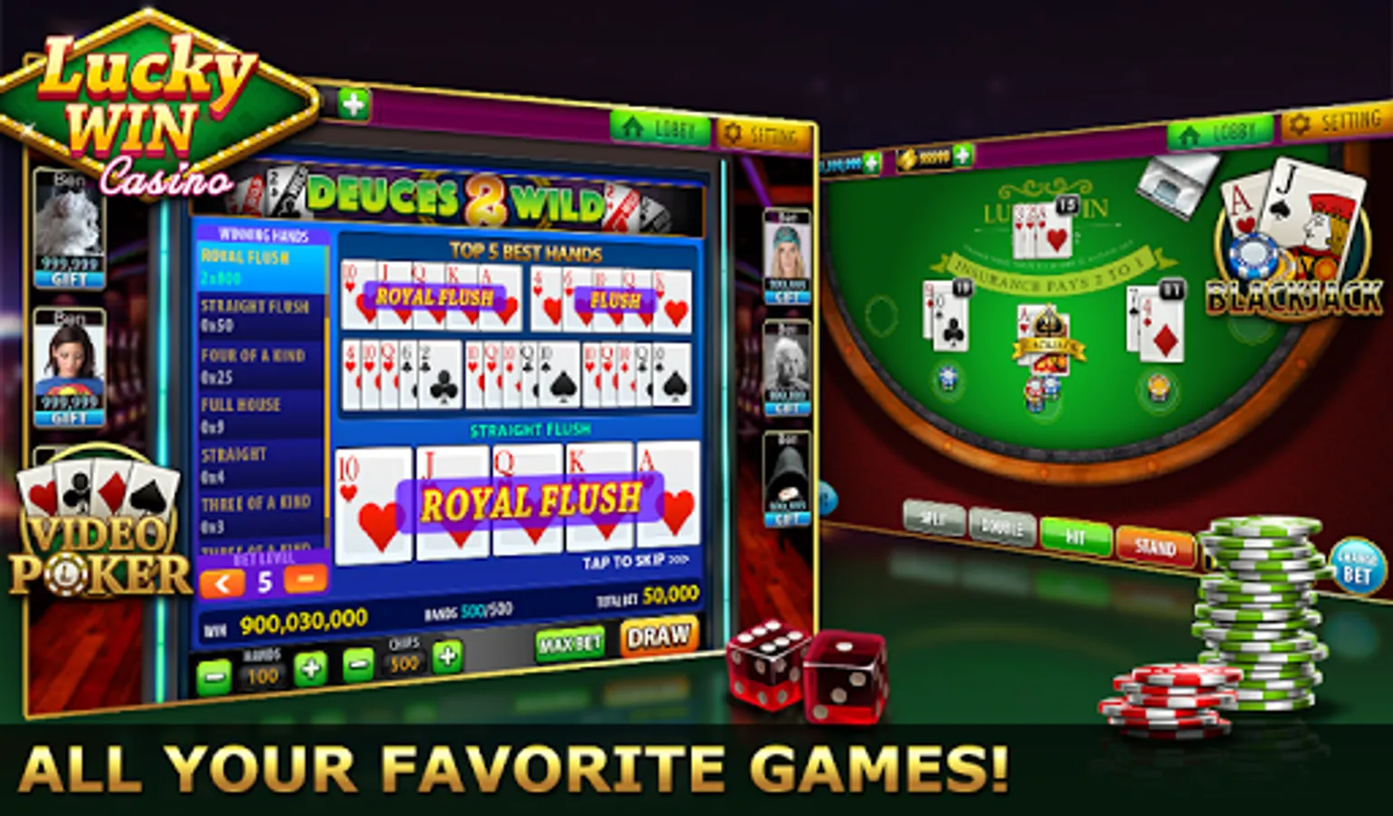 Lucky Win Casino™ gives you the chance to WIN BIG and MORE in Slots, Texas Hold'EM Poker, Blackjack, Tournaments, and more!