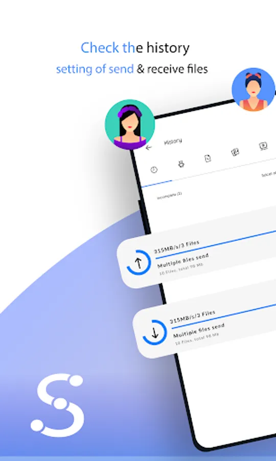 Transfer history and received files can be easily found and managed.