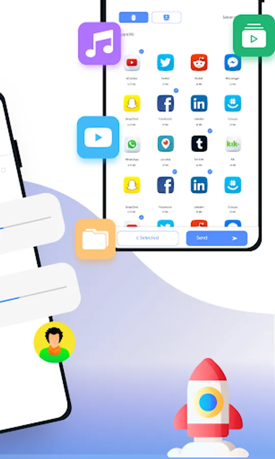 Phone cloner has a simple, clean, and user-friendly transfer files interface. All files are sorted into categories(e.g., Music, Apps, Images), making them easy to find and share.