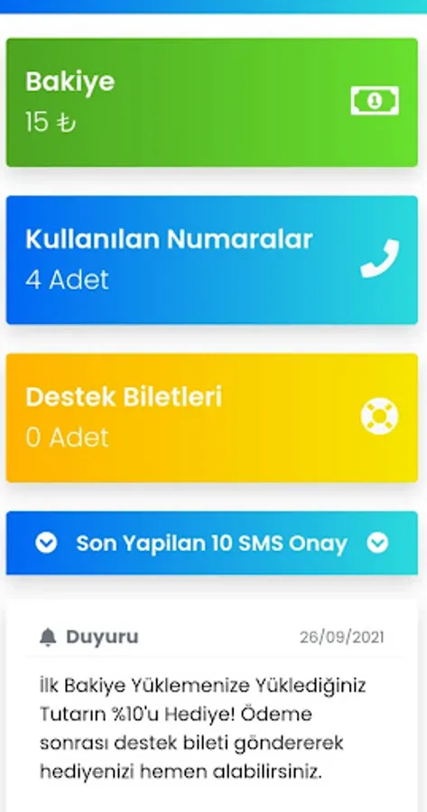 10% of the amount you load into your balance is added to your balance as a gift. You can take advantage of these advantages by downloading our sms confirmation application at the cheapest price.