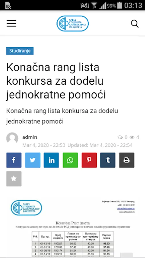 Aplikacija Saveza studenata Saobraćajnog fakulteta. SSSF je nevladina i neprofitna društvena organizacija koja za cilj ima da zaštiti prava i interese studenata. SSSF postoji još od 1995. godine i bavi se rešavanjem svih studentskih problema i aktivnostima vezanim za studentska pitanja. SSSF se zalaže za prepoznavanje studenata kao razvojne komponente i pokretačke snage društva, afirmisanje ideje studentskog organizovanja i iskazivanja potencijala studenata, kao i za stvaranje efikasnog, efektivnog i održivog sistema studiranja.