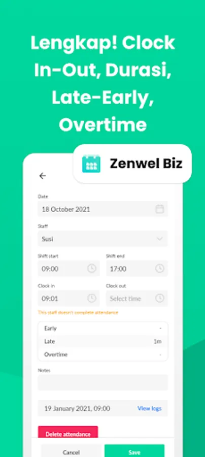 - Manage and edit attendance directly from Zenwel Biz