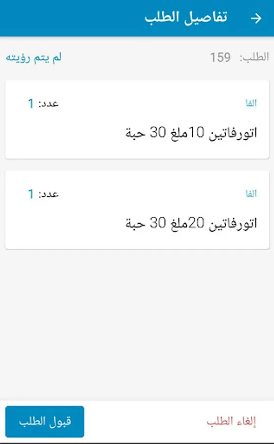 تطبيق مساعد للمستودعات لرؤية وموافقة الطلبات المرسلة من الصيادلة