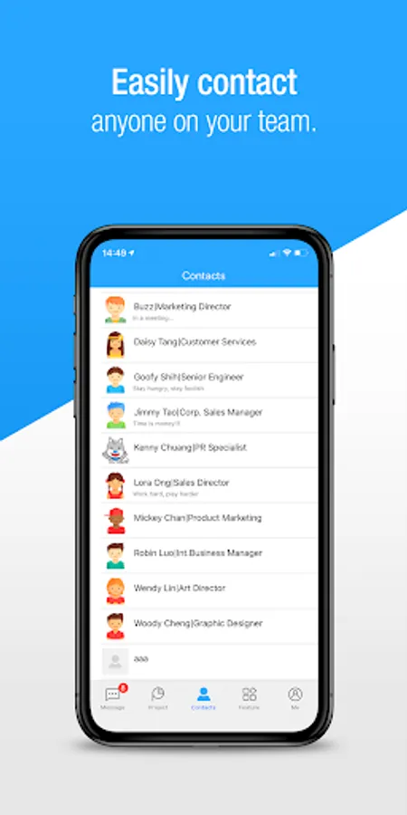 1. Know your members: get a view of the basic information of your teammates via contact cards.