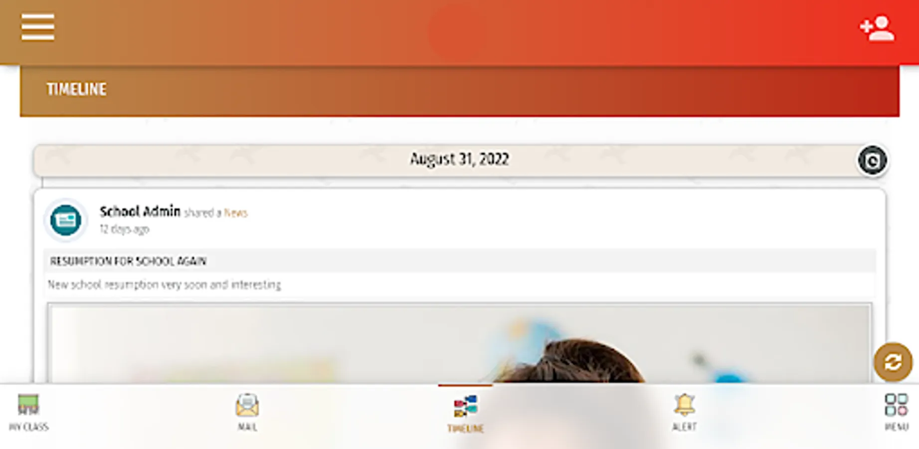Timeline : This is a view that contains the summary of the online school activities such as News, Events, Facebook Feeds and Gallery.