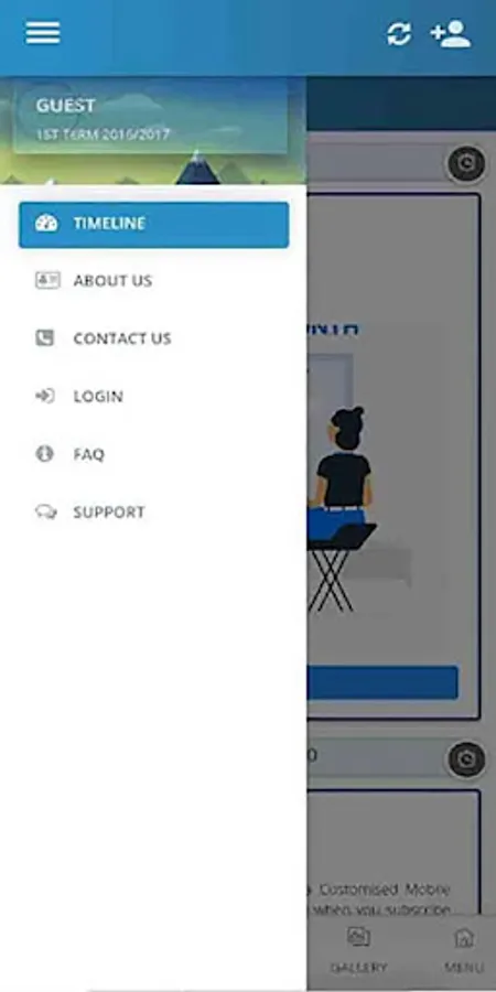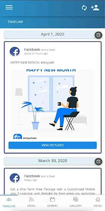 Timeline : This is a view that contains the summary of the online school activities such as News, Events, Facebook Feeds and Gallery.