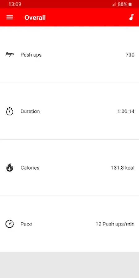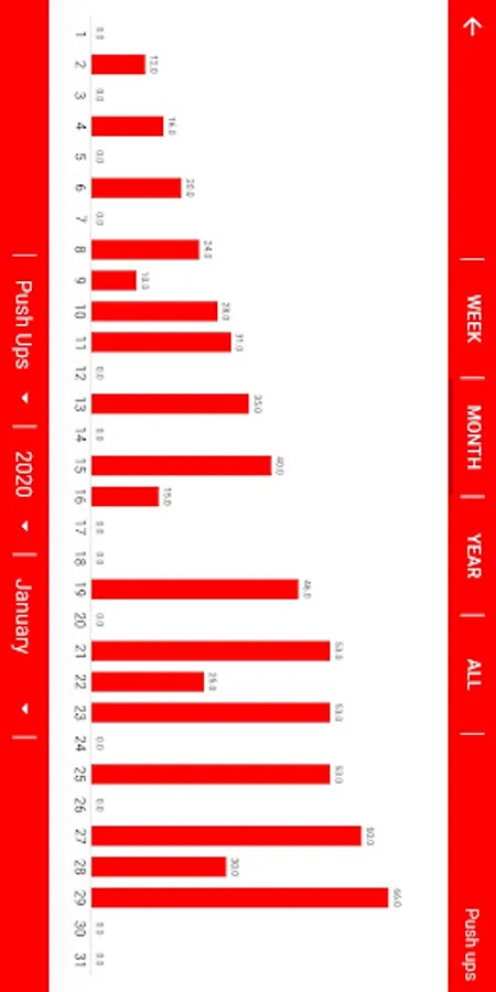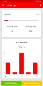 * Advanced graphs for push ups, time and calories burned, in 4 different intervals (week, month, year and all)