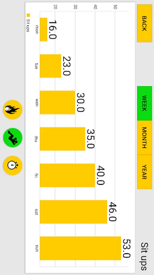 * Advanced graphs for sit ups, time and calories burned, in 4 different intervals (week, month, year and all)