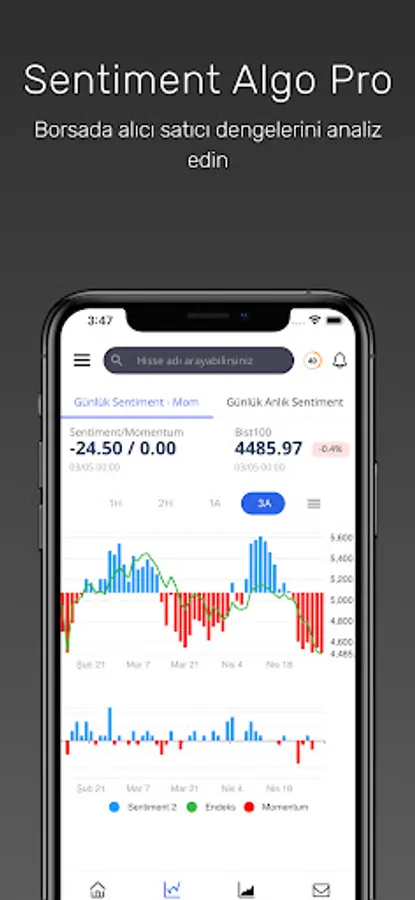 Sentiment Algo, değişen piyasa koşullarına uyum sağlayan yapısıyla her zaman ihtiyaç duyacağınız bir araçtır. Sentiment ve Momentum rakamları ile dinamik olarak piyasanın psikolojisini ölçme ve yatırımınızı buna göre değerlendirme fırsatı verir.
