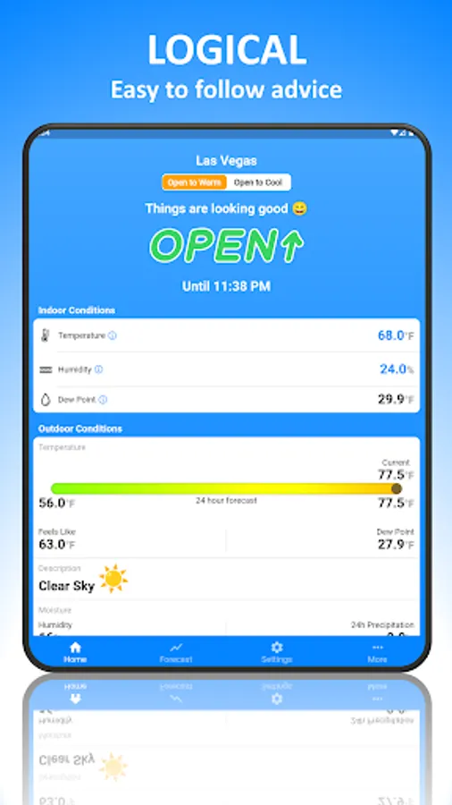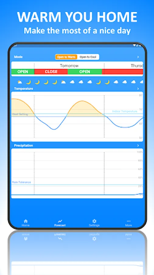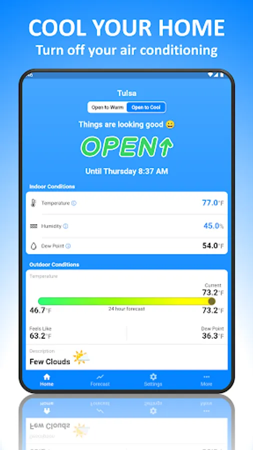 Opening your windows on a cool summer night is a great way to cool your home while saving both money and energy on air conditioning. This app helps you to make intelligent and predictive decisions to know when to open and close your windows at the right time to optimize your cooling efforts according to your preferences.