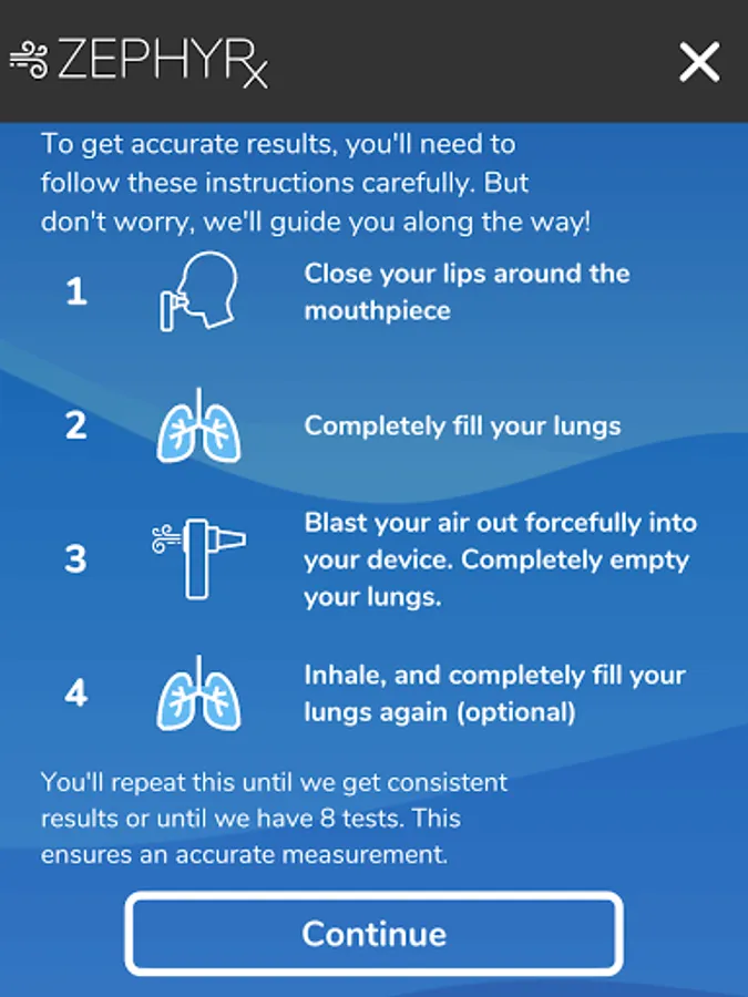The ZEPHYRx LLC app, Breathe Easy, for respiratory helps you take control over your lung health. Download and launch the Breathe Easy app from your favorite Apple mobile phone or tablet, then pair it (via bluetooth) with the ZEPHYRx handheld, breath-powered game controller (required).