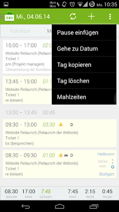 With this app easily and anywhere work and travel times can in the web-based system ZEP - clock for projects - are recorded. The project facility, numerous evaluations and the travel expenses via ZEP (www.zep.de).