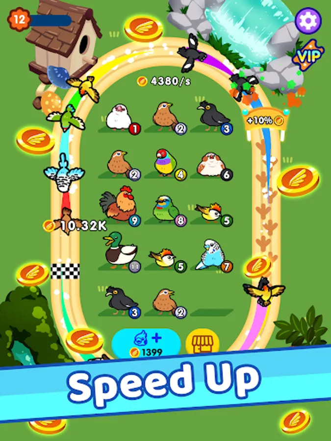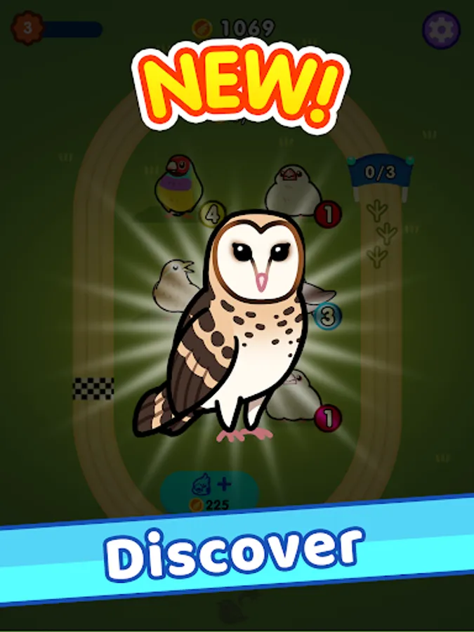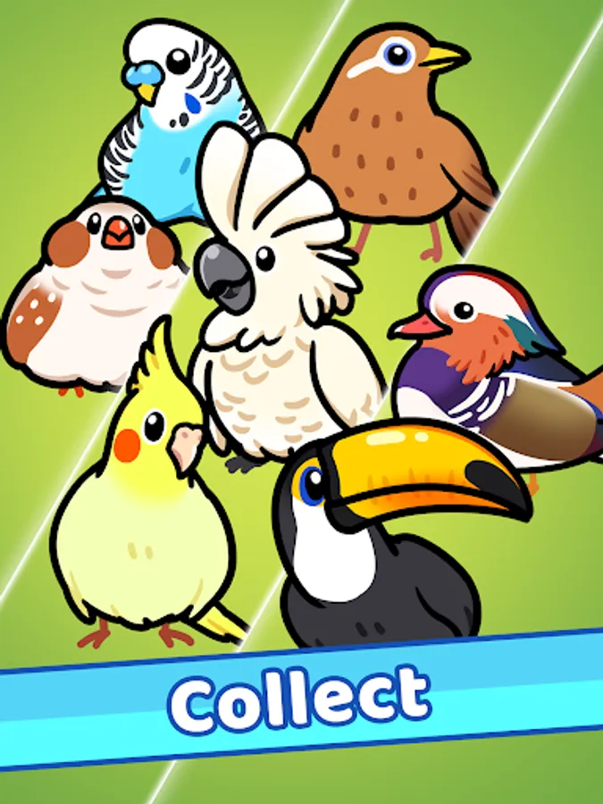 Merge your birds and combine them to upgrade. Discover species such as parakeet, macaw, cockatiel, hornbill, hummingbird, grass owl, penguin, cockatoo, mandarin duck, pheasant, canary, finch, parrot, eagle, peacock, shoebill, eagle, toucan and more.