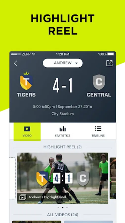 Create a quick game for a single player, or set up a team game for multiple players with sensors. The app automatically creates a highlight reel and performance metrics for the entire team, and for each individual player.